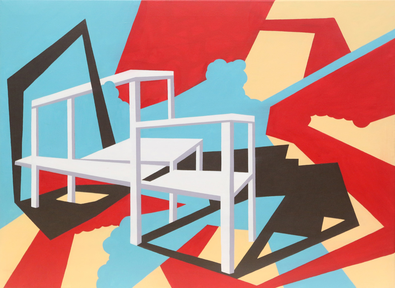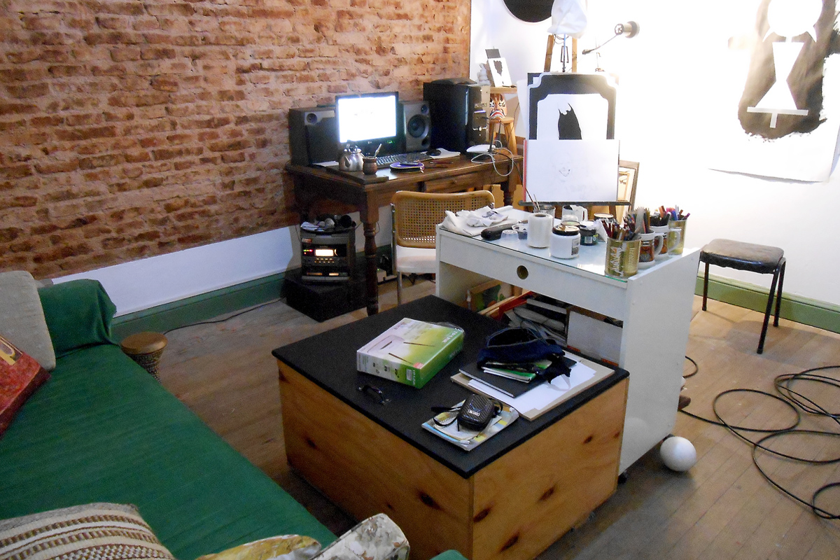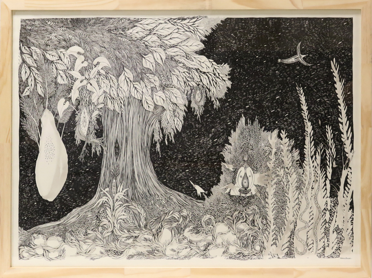Identificando las irregularidades de los fractales como enigma, realiza pinturas geométricas donde busca blancos desafiantes y negros profundos. El contraste primitivo y el silencio de los planos negros lo hipnotizan. Surge en esa profundidad el aura de un insecto inmóvil, lo inventa en un papel o una tela, piensa sus formas, texturas, brillos, opacidades, matices y lo deja que, como cualquier organismo vivo, se camufle según su entorno.